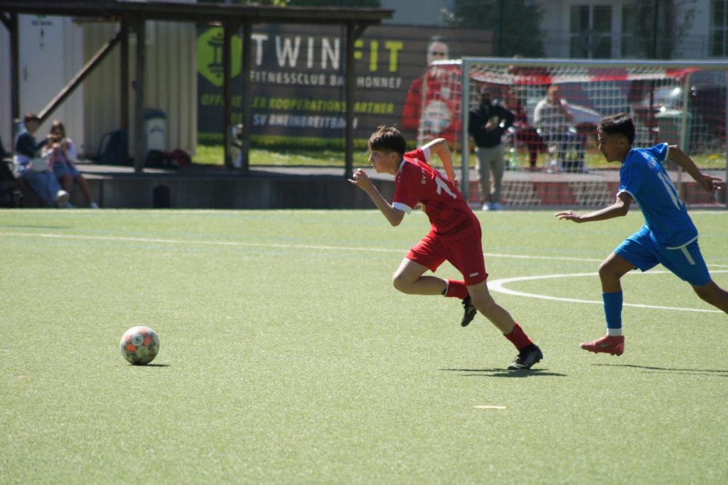 Die zweite Hälfte verlief ruhiger und auch die nicht aufgebenden Mülheimer hätten ein Tor verdient gehabt, aber der starke Torwart Tom und die gute Abwehr verhinderten dies.