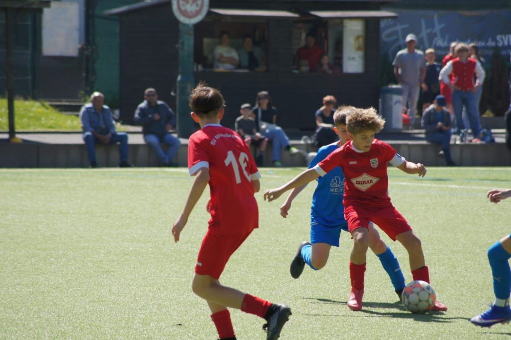 Der SVR erwischte einen Traumstart. Luca spielte nach einem frühen Ballgewinn Ege frei, der den Ball ins kurze Eck zum 1:0 hämmerte. Der SVR blieb dran. Nachdem die SG noch einmal auf der Linie klären konnte und einmal der Pfosten das 2:0 verhinderte, war es Luca, der sich den Ball in vorderster Linie eroberte und alleine aufs Tor zuzog und sicher einschoss.